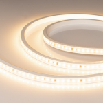 Светодиодная герметичная лента RTW серии A120, IP68 (PU - сплошной полиуретан), подходит для использования под водой на глубине до 2 м. Светодиоды SMD 2835, 120 шт/м, белая плата шириной 8 мм. Цвет ТЕПЛЫЙ 3000K, индекс цветопередачи CRI>90, угол 120°. Питание 24 В, мощность 16.8 Вт/м (84 Вт на 5 м). Размеры 5000x10.5x5.6 мм. Мин. отрезок 50 мм, 6 светодиодов. ...