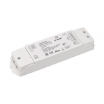 Диммер с управлением 1-10В, для светодиодных лент 12, 24, 36V. Питание DC 12-36V, макс. ток 4x8A, мощность 384-1152 W. Размер 168x58x28 мм. Управление ПДУ возможно при использовании RF/0-10V конвертера SMART 025036.