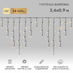 NEON-NIGHT Гирлянда Айсикл (бахрома) светодиодный, 5,6 х 0,9 м, с эффектом мерцания,черный провод "КАУЧУК", 230 В, диоды ТЕПЛЫЙ БЕЛЫЙ, 240 LEDГирлянда светодиодная Баxрома (Айсикл) 5,6x0,9м 240 LED ТЕПЛЫЙ БЕЛЫЙ черный каучук 3,3мм IP67 эффект мерцания 230В нужен блок 315-000 NEON-NIGHT