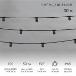 NEON-NIGHT Belt-Light 2 жилы шаг 50 см патроны e27 влагостойкая IP65Гирлянда Белт-Лайт 2 жилы, 50м, шаг 50см, 100 патронов E27, IP65, черный плоский провод каучук NEON-NIGHT