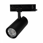 Светильник для треков/шин 4 провода. Мощность 20 Вт, св. поток без решетки honeycomb 2000 лм, 100 лм/Вт, с решеткой honeycomb 1320 лм, 66 лм/Вт, теплый 3000 K, CRI>90, угол 24°, напряжение питания 230 В. Черный круглый корпус из алюминия, материал линзы PMMA, степень защиты IP20. Размер: диаметр 74 мм, длина световой части 154 мм. Монтаж на трек 3-фазный. ...