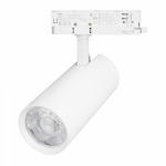 Светильник для треков/шин 4 провода. Мощность 30 Вт, св. поток без решетки honeycomb 3000 лм, 100 лм/Вт, с решеткой honeycomb 1980 лм, 66 лм/Вт, дневной 4000 K, CRI>90, угол 15°, напряжение питания 230 В. Белый круглый корпус из алюминия, материал линзы PMMA, степень защиты IP20. Размер: диаметр 90 мм, длина световой части 141 мм. Монтаж на трек 3-фазный. ...