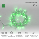 NEON-NIGHT Гирлянда Нить 10м, постоянное свечение, прозрачный ПВХ, 24В, цвет: ЗелёныйГирлянда светодиодная Нить 10м 100 LED ЗЕЛЕНЫЙ прозрачный ПВХ IP65 постоянное свечение 24В соединяется NEON-NIGHT нужен трансформатор 531-100/531-200