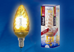 Лампа энергосберегающая (КЛЛ интегрированная) «свеча» d38мм E14 9Вт 220-240В 10000ч UnielESL-C21-T9/GOLD/E14 Лампа энергосберегающая. Форма витая золотистая свеча. Пластиковая упаковка