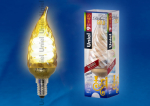 Лампа энергосберегающая (КЛЛ интегрированная) «свеча» d38мм E14 9Вт 220-240В 10000ч UnielESL-C21-TW9/GOLD/E14 Лампа энергосберегающая. Форма свеча витая золотистая на ветру. Пластиковая упаковка