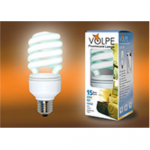 Лампа энергосберегающая (КЛЛ интегрированная) «спираль» d45мм E27 15Вт 220-240В холодная дневного света 6400К/864 10000ч VolpeCFL-H T2 220-240V 15W E27 6400K Лампа энергосберегающая VOLPE. Картонная упаковка