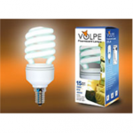 Лампа энергосберегающая (КЛЛ интегрированная) «спираль» d45мм E14 15Вт 220-240В холодная дневного света 6400К/864 10000ч VolpeCFL-H T2 220-240V 15W E14 6400K Лампа энергосберегающая VOLPE. Картонная упаковка