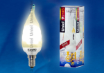 Лампа энергосберегающая (КЛЛ интегрированная) «свеча» d38мм E14 9Вт 220-240В тепло-белая 2700К/827 10000ч UnielESL-C21-TW9/2700/E14 Лампа энергосберегающая. Форма свеча витая матовая на ветру. Пластиковая упаковка