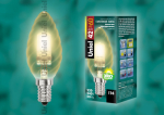 Лампа галогенная «свеча» d35мм L94 E14 42Вт 220-230В прозрачная «витая» UnielHCL-42/CL/E14 candle twisted gold. Лампа галогенная свечка витая золотая. Картонная коробка