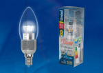 Uniel Crystal Лампа LED E14 свеча, диммируемая, теплый-белый, пластикLED-C37P-5W/WW/E14/CL/DIM ALC03SL Лампа светодиодная диммируемая пятилепестковая. Форма "свеча", прозрачная колба. Материал корпуса алюминий. Цвет свечения теплый белый. Серия Crystal. Упаковка пластик