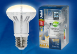 Лампа светодиодная (LED) с отражателем d63мм E27 120° 11Вт 220-230В матовая тепло-белая 3000К UnielLED-R63-11W/WW/E27/FR ALM01WH Лампа светодиодная. Форма "рефлектор", матовая колба. Материал корпуса алюминий. Цвет свечения теплый белый. Серия Merli. Упаковка пластик