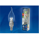 Лампа светодиодная (LED) «свеча на ветру» d37мм E14 360° 5Вт 220-230В прозрачная тепло-белая 3000К UnielLED-CW37P-5W/WW/E14/CL ALC02GD Лампа светодиодная пятилепестковая. Форма "свеча на ветру", прозрачная колба. Материал корпуса алюминий. Цвет свечения теплый белый. Цвет корпуса золотой. Серия Crystal. Упаковка пластик