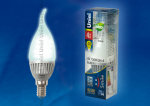 Лампа светодиодная (LED) «свеча на ветру» d37мм E14 360° 4Вт 220-230В матовая нейтральная холодно-белая 4500К UnielLED-CW37-4W/NW/E14/FR ALS01SL Лампа светодиодная. Форма "свеча на ветру", матовая колба. Материал корпуса алюминий. Цвет свечения белый. Серия Aluminium Smile. Упаковка пластик