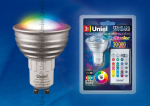 Uniel Лампа LED GU10 3W RGB блистерLED-JCDR-3W/RGB/GU10/RC Лампа светодиодная с дистанционным управлением. Упаковка блистер