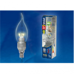 Лампа светодиодная (LED) «свеча на ветру» d37мм E14 360° 3Вт 220-230В прозрачная тепло-белая 3000К UnielLED-CW37P-3W/WW/E14/CL ALS01SL Лампа светодиодная трехлепестковая. Форма "свеча на ветру", прозрачная колба. Материал корпуса алюминий. Цвет свечения теплый белый. Серия Aluminium Smile. Упаковка пластик