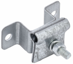 Держатель проводника круглого для конька с болтовым зажимом предназначен для закрепления прутка на коньке скатной кровли. Держатель крепится к кровле при помощи метизов. Зажим проводника происходит при помощи болтового соединения. Материал корпуса - сталь с гальваническим цинковым покрытием.