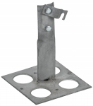 Держатель проводника круглого для плоской кровли с болтовым зажимом предназначен для закрепления прутка на плоской или наклонной кровле. Держатель крепится к кровле при помощи клея. Зажим проводника происходит путем загибания «язычка» держателя. Материал корпуса - сталь с гальваническим цинковым покрытием.