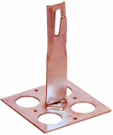 Держатель проводника круглого для плоской кровли с болтовым зажимом предназначен для закрепления прутка на плоской или наклонной кровле. Держатель крепится к кровле при помощи клея. Зажим проводника происходит путем загибания «язычка» держателя. Материал корпуса - медь.