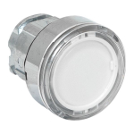 Фронтальная часть нажимной кнопки 1 упр. элемент цвет белый с круг. линзой, с подсветкой, без фиксации, EKFИсполнительный механизм кнопки XB4 белый плоский возвратный без фиксации, с подсветкой IP65 EKF