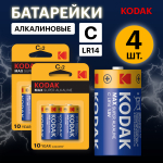 Батарейка 1.5В 8400мАч 50мм дюймовочка c/am 2 lr14 щелочная марганцевая (алкалиновая) KodakБатарейки Kodak LR14-2BL MAX SUPER Alkaline набор 4шт
