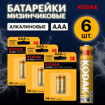 Батарейка 1.5В 1300мАч 45мм мизинчиковая aaa/am 4 lr03 щелочная марганцевая (алкалиновая) KodakБатарейки Kodak LR03 ULTRA PREMIUM Alkaline комплект 6шт