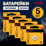 Батарейка 3В 280мАч 24мм cr 2450 литиевая KodakБатарейки Kodak CR2450-BL1 MAX Lithium набор 5шт