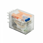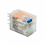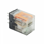 Реле миниатюрное промышленное общего назначения на 2 контактные группы. Предназначено для коммутации электрических схем. Коммутируемый ток составляет 12 А, напряжение питания катушки 12 В AС. Для удобства в реле встроены кнопка-тест с блокировкой и светодиодная индикация. Установка в колодку.