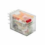 Реле миниатюрное промышленное общего назначения на 4 контактные группы. Предназначено для коммутации электрических схем. Коммутируемый ток составляет 6 А, напряжение питания катушки – 12 В DС. Для удобства в реле встроены тест-кнопка с блокировкой, защитный диод и светодиодная индикация. Установка – в колодку.