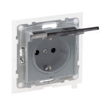 Legrand/Daccord INSPIRIA Алюминий Розетка 2К+З немецкий стандарт 16А 250В со встроенным зарядным устройством USB C 1.5А 5ВРозетка с заземлением с USB тип C - Legrand Inspiria - со шторками 16А 250В 1500мА 5В безвинтовые зажимы - алюминий