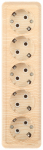Розетка Intro Quadro 2-210-11 пятиместная с заземлением 5х2P+E 16А-250В IP20 ОУ сосна