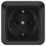 Розетка одинарная с заземлением серии Intro Quadro открытой установки цветантрацит 2-202-05. Номинальные характеристики 16А 250В. Розетка выполнена из керамики, стали и латуни, оснащёна винтовыми зажимами.