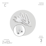 Шнур для бра UX-ШВВП-S-1,8m-W без заземления, провод ШВВП с сечением 2х0,5, длина 1,8 м, цвет - белый. Провод шнура питания состоит из скрученных жил с надежной ПВХ оболочкой. На конце шнура имеется штепсельная вилка. Изделие предназначено для комплектации или ремонта электрических бытовых приборов.