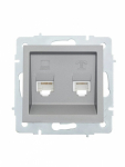 Розетка/коробка коммуникационная крепление в распор и на шурупах 2x rj11 6(4) пластик серебро LEZARD VESNAРозетка телефонная двойная евро матовое серебро VESNA