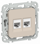 Розетка/коробка коммуникационная IEKFLITE Роз 2я RJ45/RJ11 кат.5Е/3 UTP РКТ5е/3-2-0-ФлЛ льн. IEK