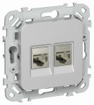 Розетка/коробка коммуникационная IEKFLITE Роз 2я RJ45/RJ11 кат.5Е/3 STP РКТ5е/3-2-1-ФлА ал. IEK