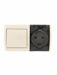 Блок комбинир-ый открыт. установки, клавишный/кнопочный 1 розетка с З/К 16А 250В пластик бежевый IP20 LEZARD NATANATA Выключатель и розетка с/з, с крышкой, крем, горизонталь (10шт/120шт)