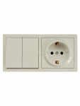 LETO Выключатель двойной и розетка с/з, крем горизонталь (10шт/120шт)
