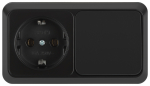LETO Выключатель проходной и розетка с/з, черный бархат горизонталь (10шт/120шт)