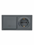 LETO Выключатель с подсветкой и розетка с/з, графит горизонталь (10шт/120шт)