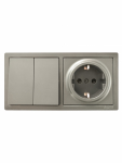 LETO Выключатель двойной и розетка с/з, платина горизонталь (10шт/120шт)