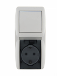Блок комбинир-ый открыт. установки, клавишный/кнопочный 1 10А 250В IP44 MakelБлок выключатель 1 кл + розетка с крышкой