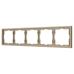 Рамка пластиковая на 5 постов, под встраиваемый механизм. Цвет - золотой, с Soft-Touch покрытием. Среднего уровня герметичности IP20. Ориентация монтажа горизонтальная.