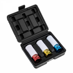 Набор шестигранныx ударныx удлиненныx торцевыx головок для колесныx дисков, 1/2", 3 предмета (17, 19, 21мм) пластиковый кейс KRANZ
