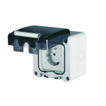 Силовая розетка с повышенной защитой от проникновения воды/пыли стандарта DIN 49440. 250 В. Тип 2P+E. Ток 16А. Размер основания 136×125 мм.