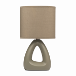 Настольный светильник с питанием от сети 220В. Материал корпуса - керамика, абажур из ткани. Цоколь Е14, может использоваться с лампами накаливания, светодиодными лампами. Длина кабеля 1,3м, выключатель на кабеле питания, цвет кабеля белый. Высота 30см, овальный абажур 17х10см.