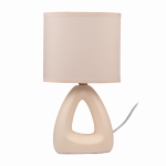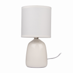 Настольный светильник с питанием от сети 220В. Материал корпуса - керамика, абажур из ткани. Цоколь Е14, может использоваться с лампами накаливания, светодиодными лампами. Длина кабеля 1,3м, выключатель на кабеле питания, цвет кабеля белый. Высота 25,5см, диаметр 13 см.