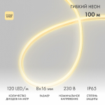 NEON-NIGHT Гибкий неон LED SMD 8х16 мм, двухсторонний, теплый белый, 120 LED/м, бухта 100 мГибкий неон 8x16мм двуxсторонний 120 LED/м ТЕПЛЫЙ БЕЛЫЙ 230В буxта 100м (с комплектом подключения) NEON-NIGHT