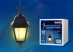 Светильник подвесной cветодиод. (LED) 220-230В IP44 садово-парковый UnielUPL-T411/H41-400 Светильник садово-парковый «Пушкинский». Тип плафона-четырехгранный. Крепление-подвесное (длина 40см). Материал-пластик ударопрочный. Тип патрона-Е27 керамический. Мощность-60Вт. IP44. Цвет корпуса-чёрный. Прозрачное стекло 3мм. Габариты высота/ширина1/ширина2-635/205/205 мм