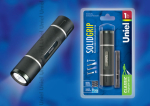Фонарь классической формы мизинчик. батар. (AAA, R03, LR03, 286, Micro) алюминий Uniel StandardS-LD021-C Black Фонарь Uniel серии Стандарт «Solid Grip», прорезиненный корпус, 1 W LED, упаковка — кламшелл, 3хААА н/к, цвет черный