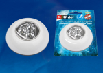 Пушлайт (pushlight) мизинчик. батар. (AAA, R03, LR03, 286, Micro) пластик UnielDTL-360 Круг/White/3LED/3АAA Cветильник-ночник пушлайт, питание от 3-х батареек AAA (в комплект не входят). Белый. ТМ Uniel
